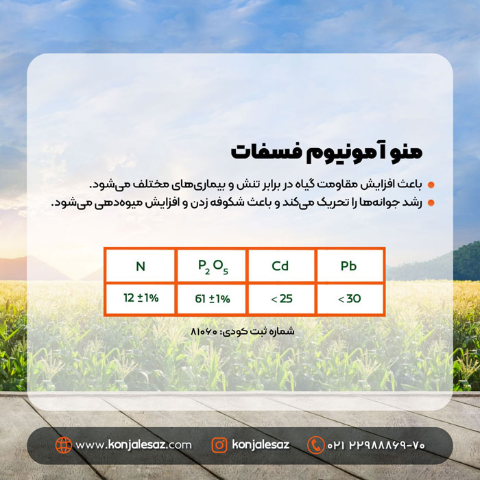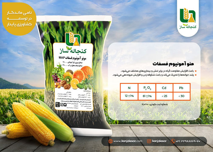 مونو آمونیوم فسفات (Monoammonium phosphate) که به اختصار به آن MAP گفته می شود. به دلیل محتویات بالای فسفر، یک کود فسفره محسوب می شود. نقش MAP به عنوان کود، افزایش رشد گیاه و ایجاد سلامتی است. حلالیت بالایی در آب دارد و در خاک مرطوب سریع حل می شود. بهترین زمان مصرف آن بهار و پاییز است.